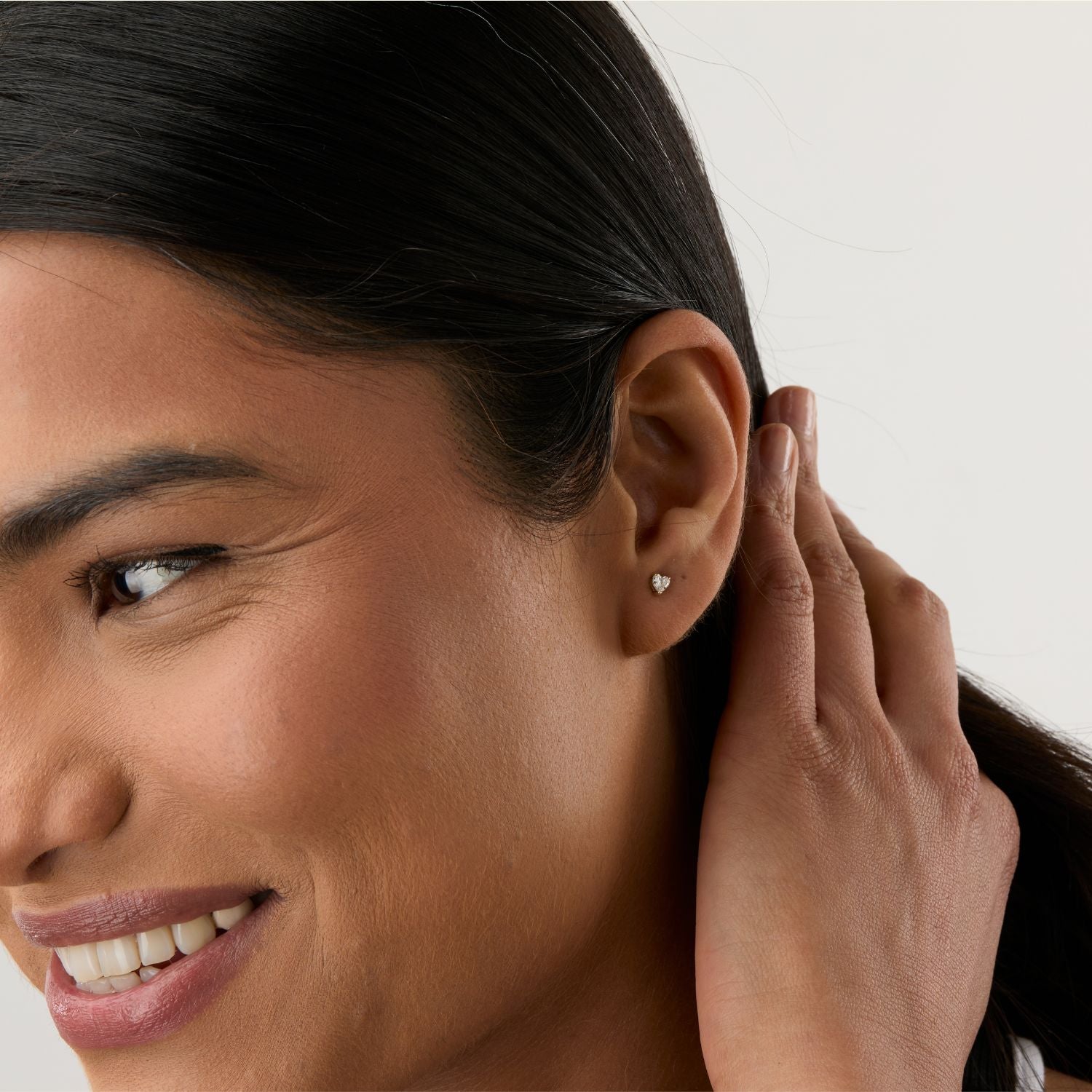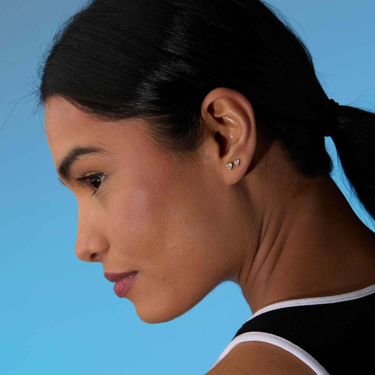 Heart stud earrings provide a modern and simple design perfect for creating your own ear stack.